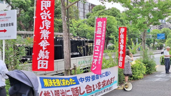 6.27 明治HD株主総会前で長期争議の解決を迫る!