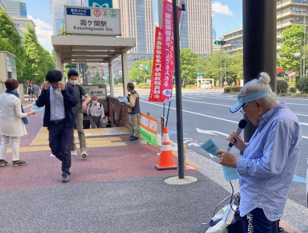 京橋エドグラン前 第92次「座り込み行動」=7月16日、16時〜17時。