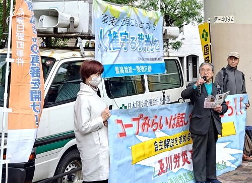 下級審の杜撰な審理でコープみらいの安全配慮に欠ける問題ある対応を見過ごし、労災として認められず悲惨な事態招いていることを訴えました。所属組合の食品一般ユニオンは労働委員会での解決向けて取り組んでいます、引き続きご支援お願い致します。