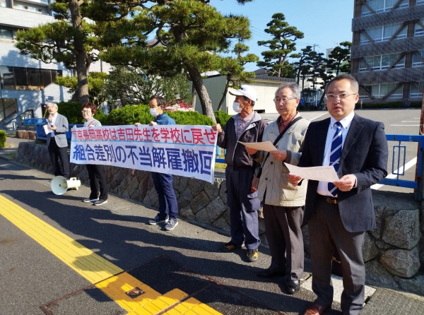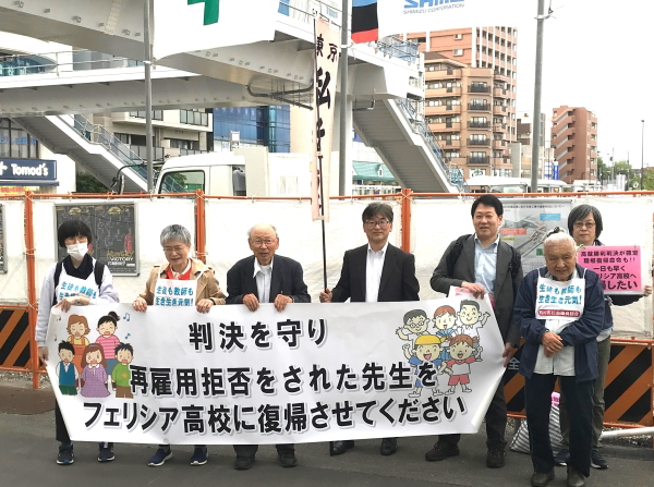 5/27 鶴川駅前で復帰を求める教員の仲間
