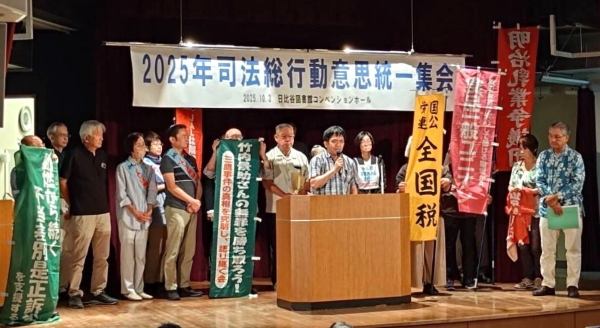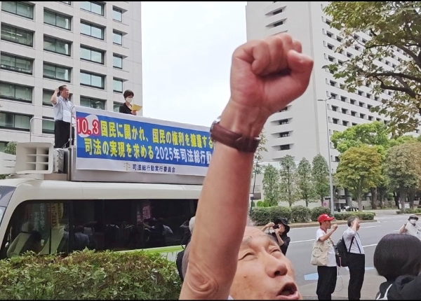 10/3 司法総行動で訴える原口さん(中央)