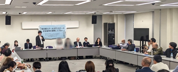 東京都スクールカウンセラー(SC)争議は、法廷を溢れる支援傍聴者が集まる中で10月21日第5回裁判が行われました。