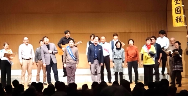 昨年11月の「日本のうたごえ祭典in 神戸」に「全国税スクラムうたう会」が出演し、歌を通じて原口さんの闘争への支援を訴えました。参加者の共感を呼び、争議を社会全体の課題として共有する重要な機会となりました。