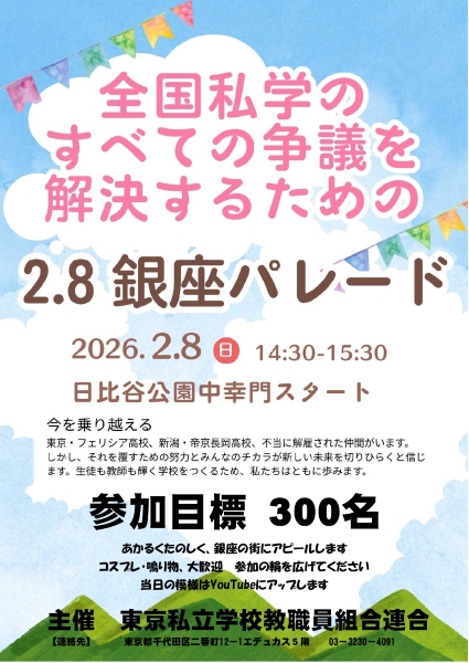 2月8日(日)14:30 全国私学のすべての争議解決のため