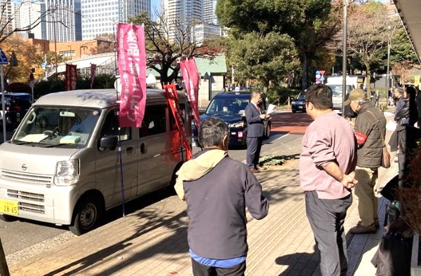 第109次新春「社前座り込み行動」=京橋エドグラン前
