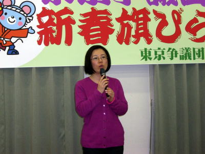 旗開きで訴える川崎さん