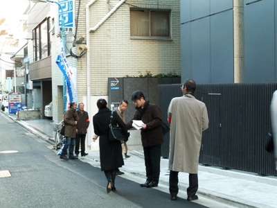 また、2月4日の夕方、東京・初台の新国立劇場前で、オペラ「夕鶴」鑑賞につめかけたオペラファンに対し、弁論開催決定のビラを配り最高裁に公正な判決を求める署名活動を行ないました。ビラを配る仲間に「弁論決定よかったね」「がんばって」と声がかかり、カンパを寄せてくれる人もいました。