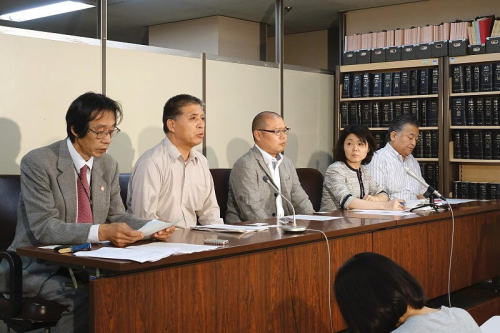 記者会見を行う原告団