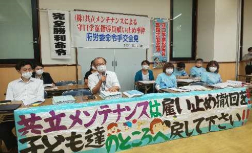 大阪府労働委員会は10月14日、「守口学童保育指導員の雇止め事件」について、組合側の主張を全面的に認め(株)共立メンテナンスの不当労働行為を断罪する勝利命令を下しました。