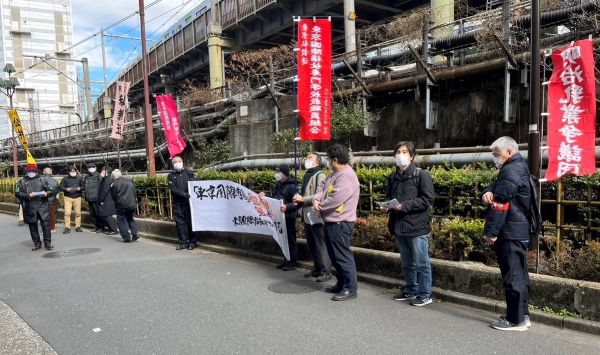 京橋エドグラン前 第75次「座り込み行動」3月20日(月)12時〜13時。